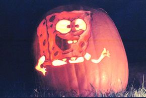 Rather than cutting holes all the way through a pumpkin's skin, some people remove layers of the skin to create designs. You can do this one of two ways. You can scrape your design into the surface of the pumpkin so that the light shines directly through it. Or, you can scrape away all of the skin in a circle around your design so that the silhouette creates the image. You can create a design yourself, or you can find patterns in books or on Web sites.